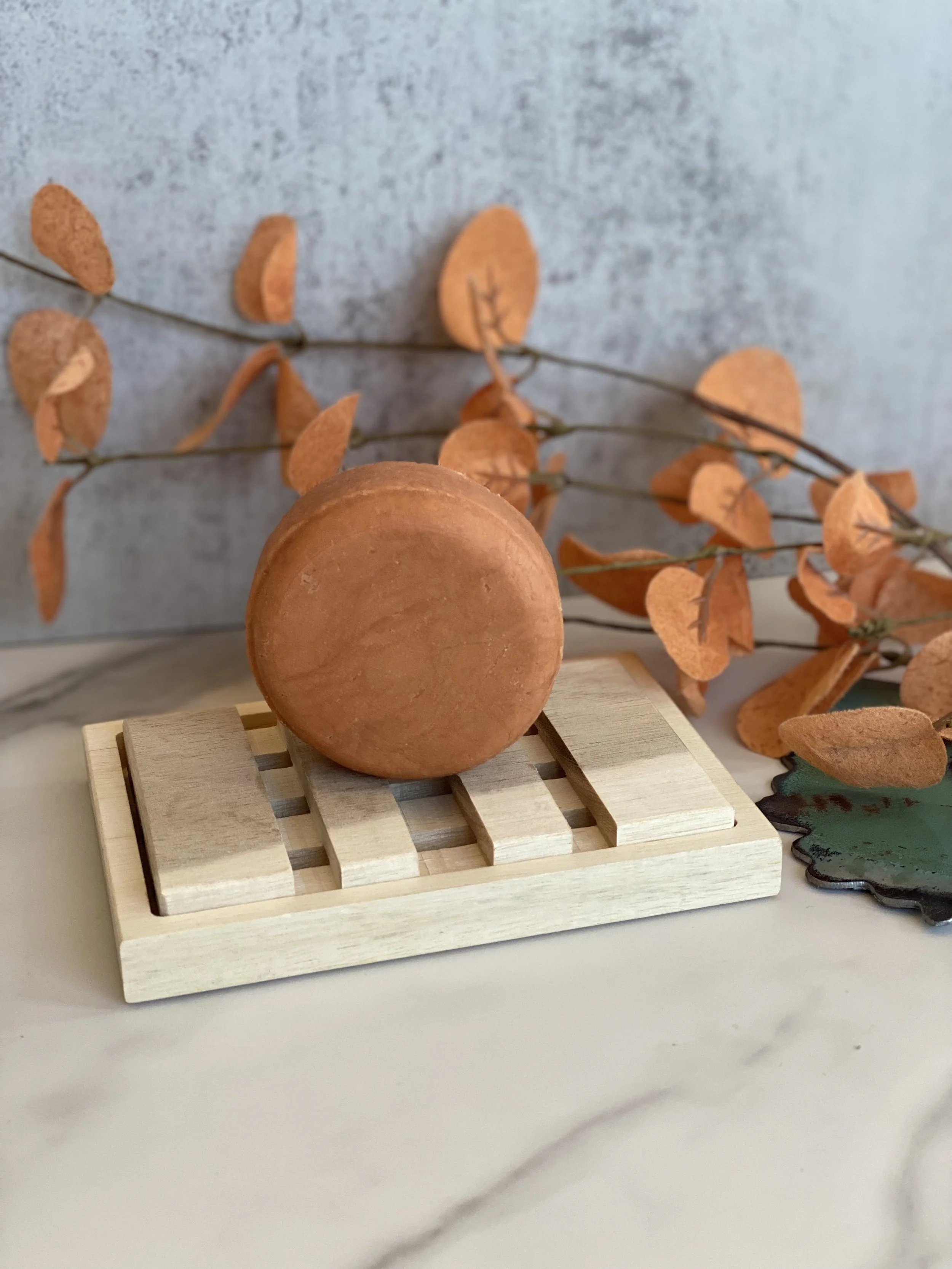 INGREDIENTS: Sodium cocoyl isenthionate, grass fed tallow, organic sunflower oil, shea butter, sodium methyl cocoyl taurate, cocamidopropyl betaine, btms, pink clay, cocoa butter, cetyl alcohol, kaolin clay, citric acid, orange, glycerine, optiphen plus.